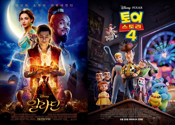 디즈니 영화 '알라딘'과 '토이 스토리 4'가 쌍끌이 흥행 중이다.