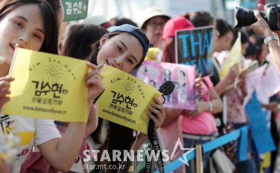 이날 김수현의 전역 현장에는 이른 시간에도 불구, 약 300여명의 국내외 팬들과 약 50여명의 취재진이 몰려들었다. 한국팬들은 물론, 캐나다 홍콩 일본 대만 필리핀 말레이시아 중국 등지에서도 팬들이 김수혁의 전역 현장에 함께 했다.