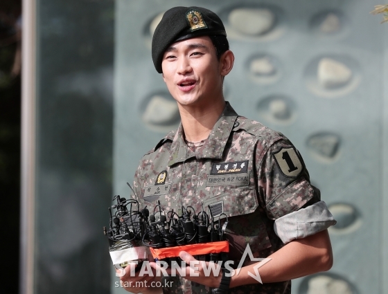 이어 김수현은 "오늘 새벽에 전역을 준비했는데 지금까지 실감이 잘 안난다. 그래도 후련한 기분인 것 같다"라고 설명했다.