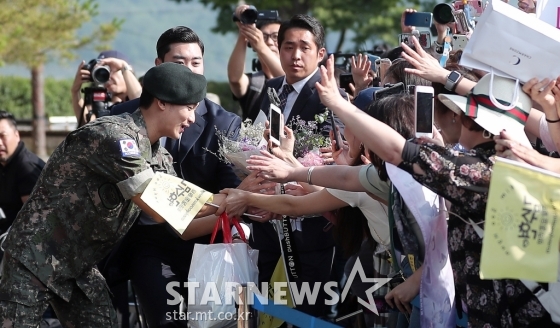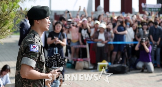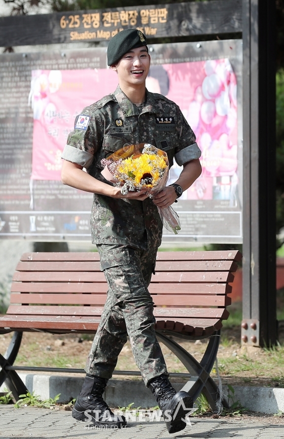 김수현은 1일 경기도 파주신 문산읍 한 부대에서 전역식을 갖고 만기 전역했다.