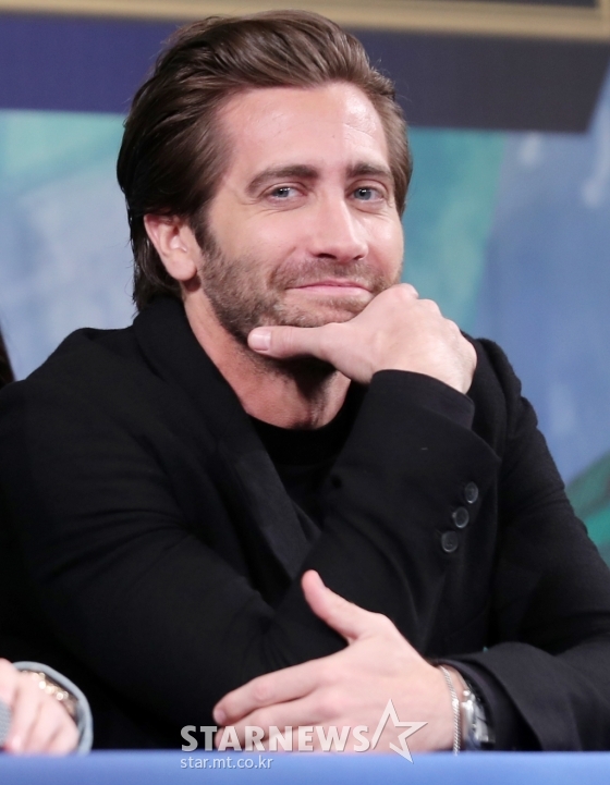 제이크 질렌할은 1일 오전 서울 포시즌스호텔 그랜드볼룸에서 열린 영화 ‘스파이더맨: 파 프롬 홈’(감독 존 왓츠) 내한 기자회견에 톰 홀랜드와 같이 참석했다. 두 사람은 '스파이더맨: 파 프롬 홈' 홍보를 위해 내한했다.