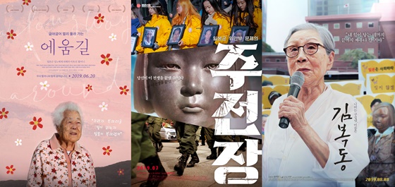 오는 8월 8일에는 '김복동'이 개봉한다. '김복동'은 '에움길', '주전장'과 마찬가지로 일본군 성노예제 피해자 할머니에 대한 이야기를다. '김복동'은 여성인권운동가이자 평화운동가였던 일본군 위안부 피해자 김복동 할머니가 1992년부터 올해 1월 세상을 떠날 때까지 일본의 사죄를 받기 위해 투쟁했던 27년 간의 여정을 담았다.