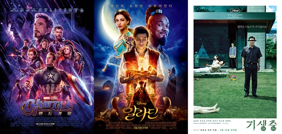 /사진=영화 '어벤져스: 엔드게임', '알라딘', '기생충' 포스터