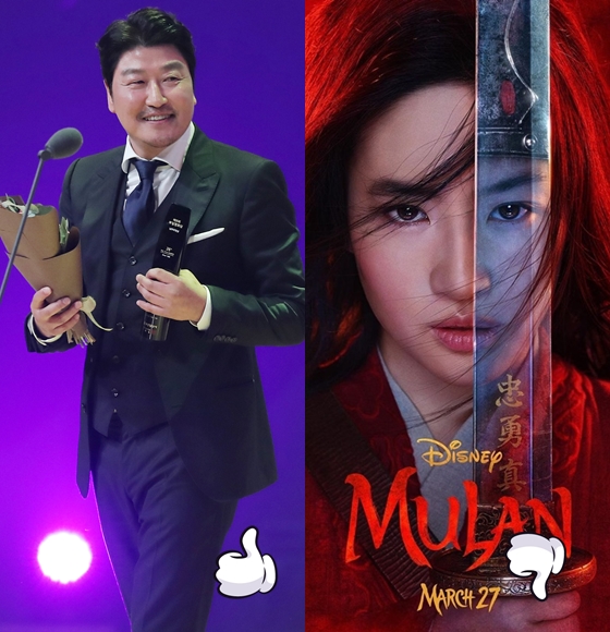 또 송강호는 "배우로서 지난 30년을 되돌아 보면 과분하게 영광스러운 과정이었다. 그 과정에 한국의 위대한 예술가들이 계신다. 이창동, 박찬욱, 김지운 감독님들께 감사와 존경을 전한다"라고 토로했다. 이어 시상식에 함께 참석한 봉준호 감독에게 "여기 이 자리까지 같이 해 준 나의 영원한 동지이자 친구이고, 대한민국의 자랑스럽고 위대한 예술가 봉준호 감독님께 이 트로피의 영광을 바친다"라고 고백했다.