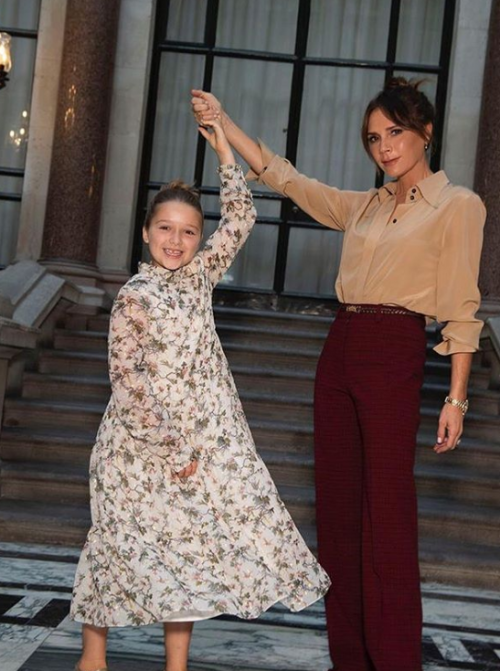 빅토리아 베컴은 자신의 쇼가 끝난 후 백 스테이지에서의 딸의 모습 역시 SNS에 올려 딸에 대한 애정을 과시하기도 했다.