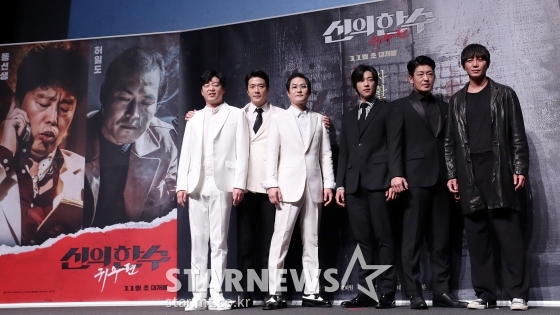1일 오전 서울 강남구 CGV압구정에서 영화 '신의 한 수: 귀수편'(감독 리건) 제작보고회가 열렸다. 이 자리에는 배우 권상우, 김희원, 김성균, 허성태, 우도환, 원현준 그리고 리건 감독이 참석했다.