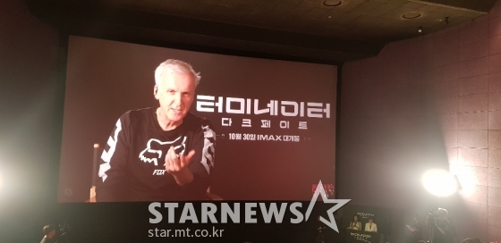 제임스 카메론은 25일 서울 왕십리CGV에서 진행된 한국 취재진과 라이브 컨퍼런스를 가졌다. 앞서 지난 21일 서울에서 린다 해밀턴, 아놀드 슈왈제네거 등이 참석한 아시아정킷도 진행했다. 총 지휘자인 제임스 카메론은 라이브 컨퍼런스로 다시 한국 취재진과 만나 영화에 대해 애정을 쏟아냈다.