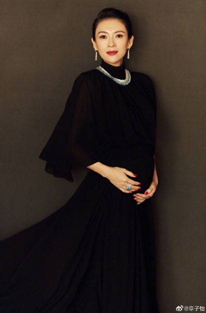 공개 된 사진 속 장쯔이는 블랙 드레스를 입고 만삭의 D라인을 뽐내고 있다.