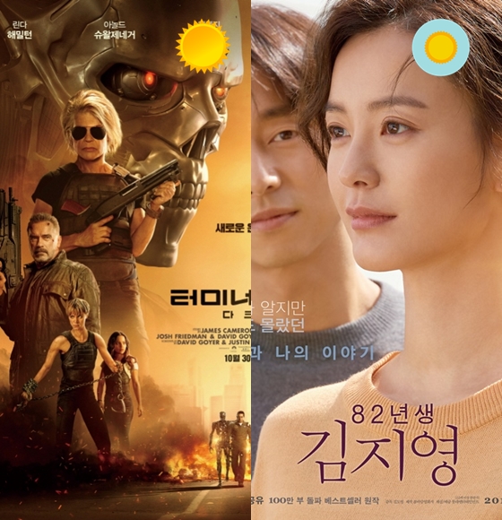 다만 '82년생 김지영'은 입소문이 크게 돌면서 뚜렷한 상승세를 탄 반면 '터미네이터: 다크 페이트'는 못 만든 2편 리메이크 같다는 혹평이 늘고 있어 이번 주말이 지나면 순위가 명확히 갈릴 것 같다.
