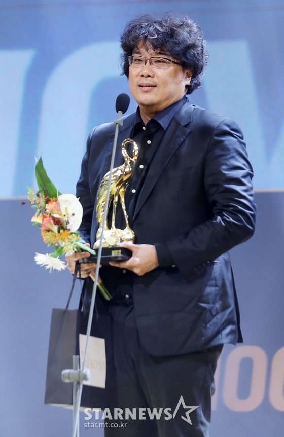 이날 봉준호 감독은 영상 편지로 수상 소감을 대신했다. 그는 "무척 영광이고 기쁘다. 여러분들과 영광을 나눠야하는데 영상으로 인사를 전하게 되서 죄송하다"고 말문을 열었다.
