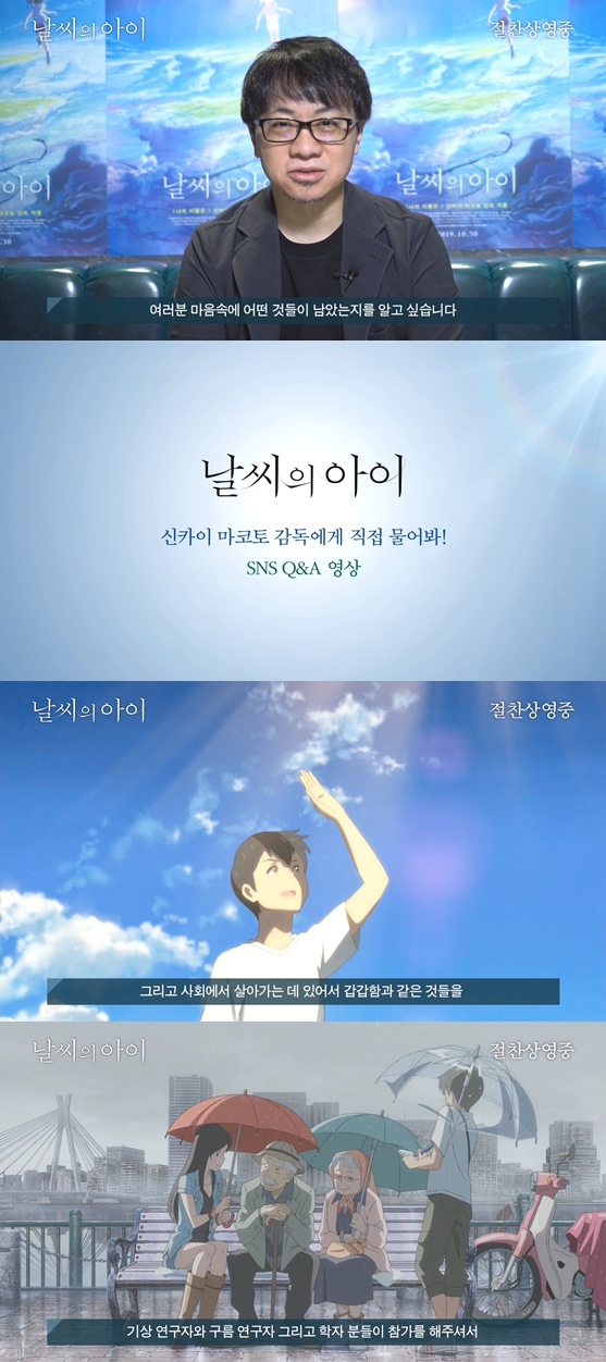 이렇게 완성된 SNS Q&A 영상은 신카이 마코토 감독을 향한 영화 팬들의 애정과, 한국 관객들을 향한 신카이 마코토 감독의 애정이 돋보인다.