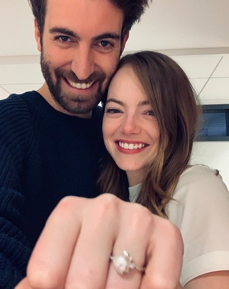 4일(현지시각) 데이브 맥커리는 엠마 스톤과 함께 한 사진을 게재했다. 사진 속 두 사람은 다정하게 서로를 끌어안고 있으며, 특히 엠마 스톤은 손가락에 낀 진주 다이아몬드 반지를 앞으로 내밀며 약혼을 알렸다.