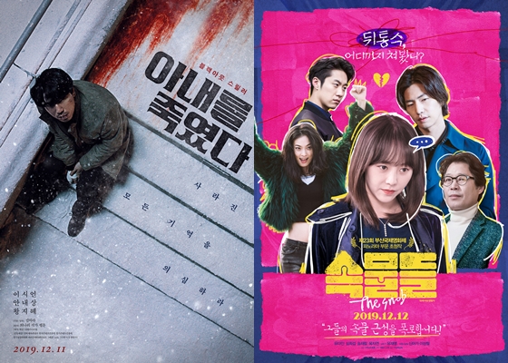 영화 '겨울왕국2'가 천만을 넘고, '시동' '백두산' '천문' 등 연말 기대작들이 개봉을 앞둔 가운데, 작은 한국영화들이 먼저 관객을 만난다. 이시언 주연의 영화 '아내를 죽였다'와 미술계를 배경으로 인간의 욕망을 그린 영화 '속물들'이 개봉한다.