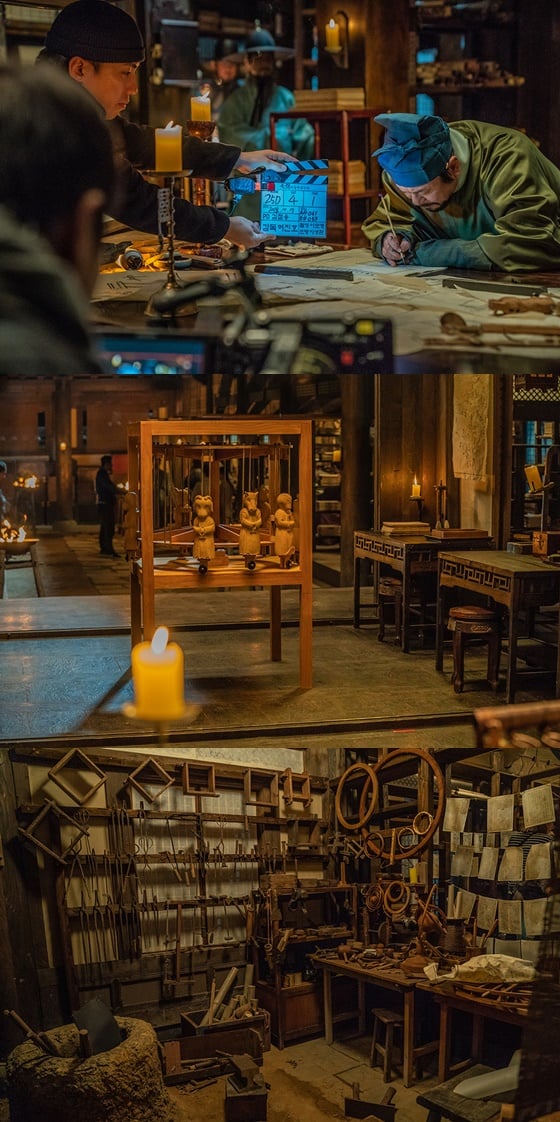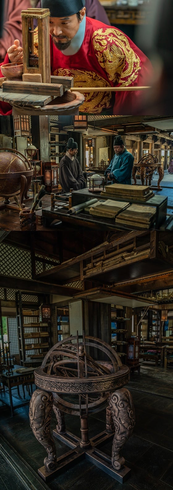 공개된 스틸에는 그들이 밤을 새워 읽었을 듯한 연구 서적들과 발명 기구들의 설계도들 그리고 군데군데 완성되지 않은 발명품들이 보이는 서운관의 실내를 엿볼 수 있다.