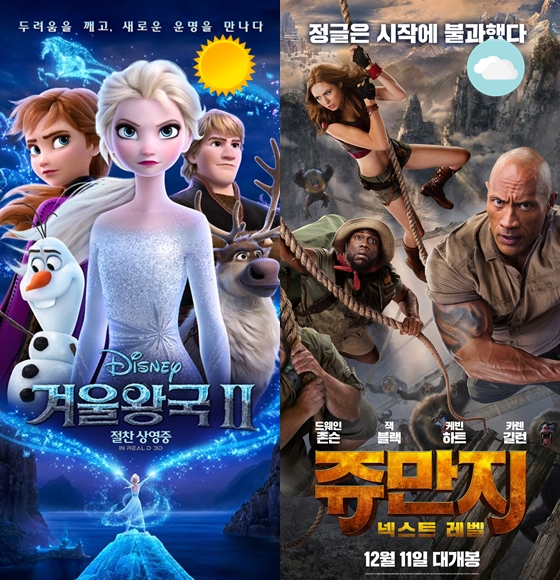 [주말흥행기상도] 1200만 고지 '겨울왕국2' vs 2위 '쥬만지'