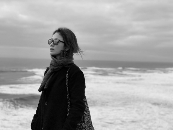 공개된 사진 속 송혜교는 바다 배경에 선글라스를 끼고 주머니에 손을 꽂은 채 옆쪽을 응시하고 있다.