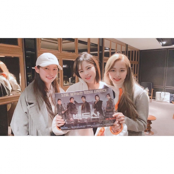 트와이스 정연·쯔위, 배우 공승연과 함께 영화 '백두산' 관람