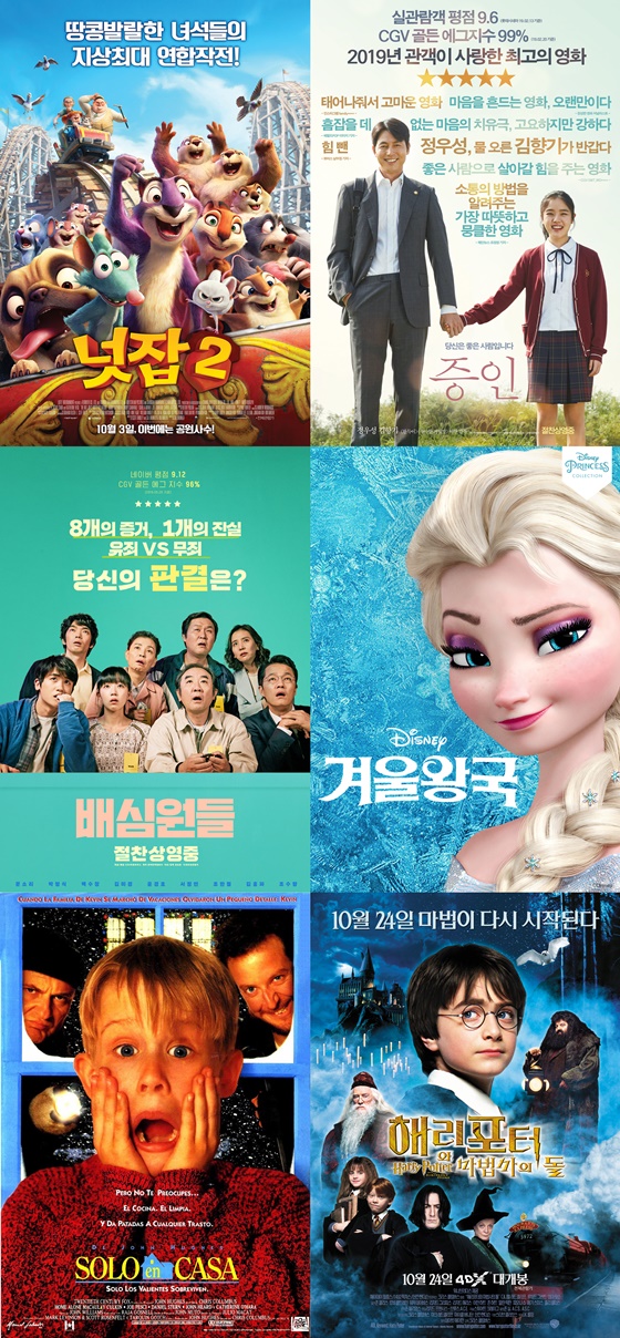 OCN에서는 '겨울왕국'과 크리스마스 특선 영화로 빼놓을 수 없는 '나 홀로 집에' 시리즈, '내안의 그놈'(감독 강효진), '코코'가 차례로 시청자와 만난다. 이 외에도 채널 CGV에서는 '해리포터' 시리즈, '그린 북'이, 수퍼액션에서는 '나니아 연대기' 시리즈, EBS에서는 '말레피센트', '쿼바디스' 등을 만나볼 수 있다.