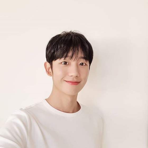 사진 속 정해인은 카메라를 바라보고 미소를 짓고 있다. 흰 티셔츠를 입고 있는 모습이 말간 얼굴을 돋보이게 한다.