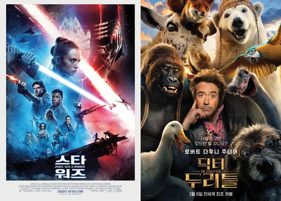 연말 극장가를 강타한 '백두산'(감독 이해준·김병서)이 박스오피스 왕좌를 지키고 있다. 2020년 경자년 새해를 맞아 '백두산'에 대적할 영화들이 관객을 만날 준비를 마쳤다. '스타워즈' 시리즈의 피날레인 '스타워즈: 라이즈 오브 스카이워커'와 '닥터 두리틀'이다.