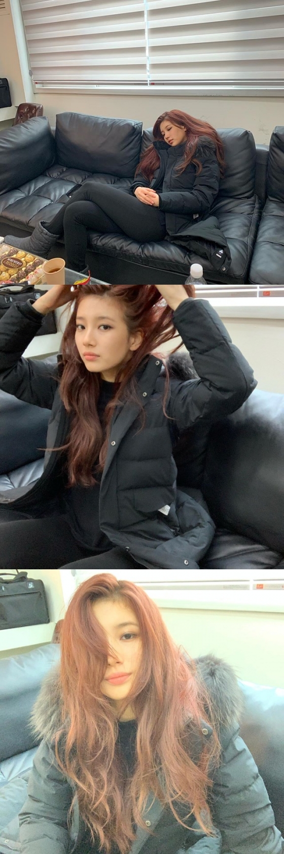 공개된 사진 속 수지는 벽돌색 염색 머리로 이전과는 다른 머리 스타일을 보여줬다. 소파에 편하게 기대 누워있거나 무심하게 카메라를 바라보고 있는 모습에서 자연스러움이 느껴진다.