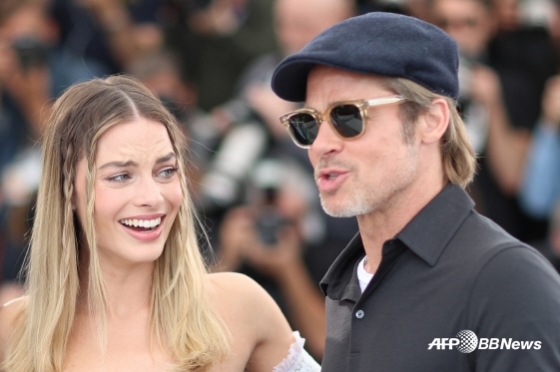 '원스 어폰 어 타임 인 할리우드'로 칸국제영화제 참석한 브래드 피트와 마고 로비. 마고 로비는 제 73회 영국 아카데미 시상식에 불참한 브래드 피트를 대신해 소감을 전했다. /AFPBBNews=뉴스1