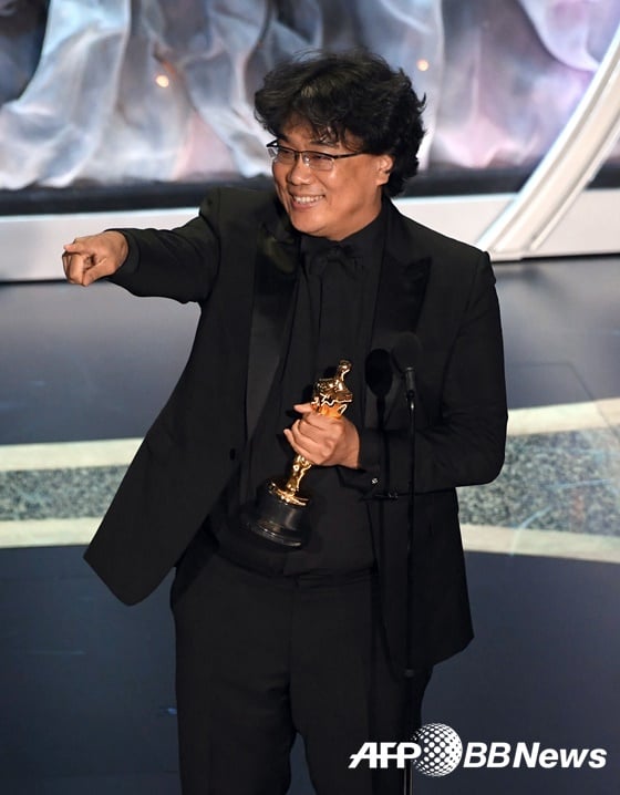 '기생충'이 제92회 아카데미 시상식에서 각본상을 수상한 가운데, 봉준호 감독은 배우들에게 영광을 돌렸다. 특히 이선균과 최우식의 포즈가 시선을 끌었다.