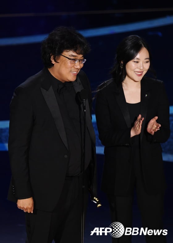 또 봉준호 감독은 "제가 학교 다닐 때 존경하고 배우던 분들과 이렇게 함께하는 것조차 영광이다. 그리고 제 영화를 미국에서 잘 모를 때부터 언급하고 영화를 좋아해 주던 쿠엔틴 타란티노 감독에게 영광을 돌린다. 감사하다. 아이 러브 유 타란티노"라고 말해 웃음을 안겼다.