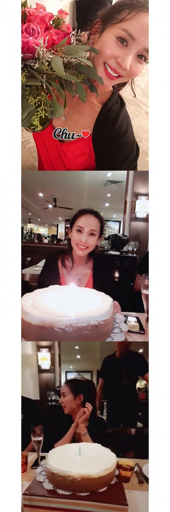 공개된 사진 속 조여정은 빨간색 꽃다발을 들고 환하게 웃고 있다. 케이크 앞에서 아름다운 미소를 짓고 있어 보는 이로 하여금 행복한 기운을 느끼게 했다.
