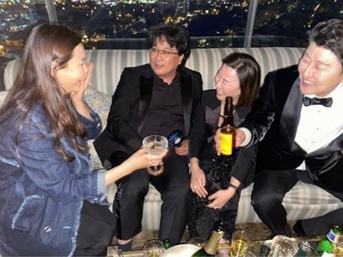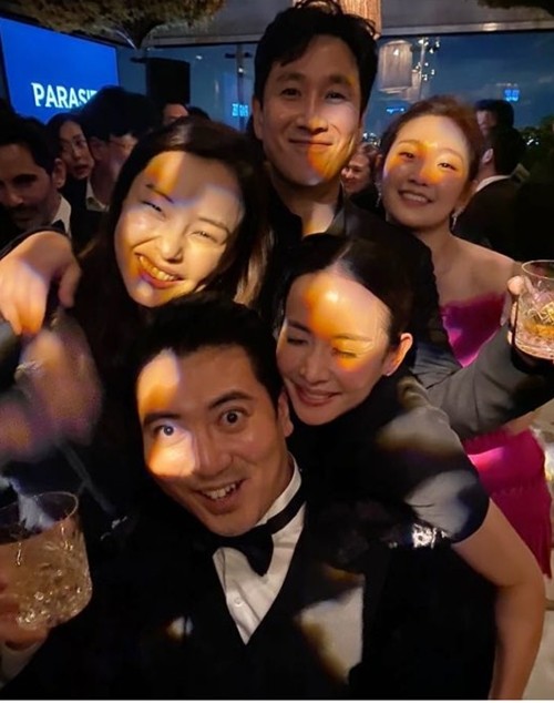 이하늬는 당시 LA 방문 중이었으며, '기생충' 팀의 축하 파티에 참석한 것으로 알려졌다.