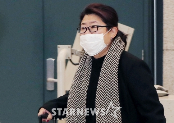 스태프 없이 홀로 비행기에 올랐던 이정은은, 큰 캐리어를 끌고 입국장을 나왔다. 짧은 일정과 긴 비행에 지친 모습이었지만, 마스크를 쓰고 취재진을 향해 인사를 건넸다.