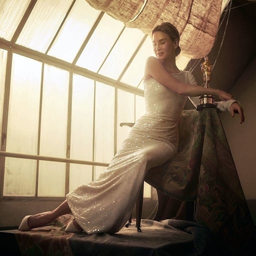 오스카 시상식 이후 열린 배니티 페어 오스카 파티의 스튜디오에서 찍은 사진 속 르네 젤위거는 여우주연상의 품격이 느껴지는 아름다운 외모로 시선을 사로잡는다.