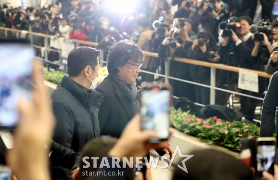 연예영화[★포토]'오스카 4관왕' 봉준호 감독에 쏠린 관심발행 : 2020.02.16 ・ 18:53인천국제공항=이기범 기자미국 아카데미 시상식에서 작품상과 감독상 등 4개 부문의 트로피를 안은 영화 '기생충'의 봉준호 감독이 16일 오후 인천국제공항을 통해 귀국하고 있다.<저작권자 © 스타뉴스, 무단전재 및 재배포 금지>추천 기사이기범 기자기자홈좋아요 연예-영화의 인기 급상승 뉴스연예-영화의 최신 뉴스