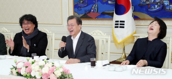아카데미 시상식 4관왕의 영광을 안은 '기생충' 팀이 청와대 오찬에 초청 받아 문재인 대통령 내외와 만났다. '기생충' 팀은 대장정을 마무리 하며 식사를 했고, 문 대통령은 '기생충' 팀을 격려했다.
