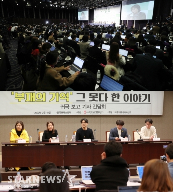 하루 앞선 18일 서울 프레스센터 19층에서 열린 '부재의 기억' 귀국 기자회견은 30여명이 채 안 되는 기자들이 찾았다. 생중계는 기자회견을 주최한 한국독립PD협회 페이스북을 통해 실시됐다.