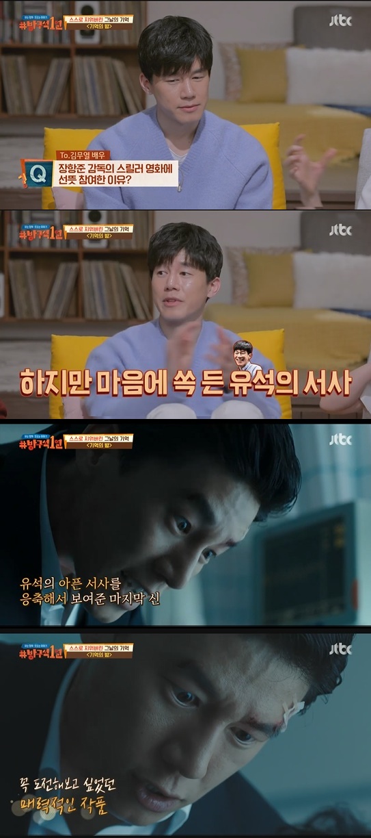 이날 방송에서 김무열은 영화 '기억의 밤'에 출연한 이유에 대해 "장항준 감독이 이런 책을 쓰셨다는 게 반전이었다. 제 캐릭터만 놓고 보면 서사가 마음에 들었다"고 밝혔다.