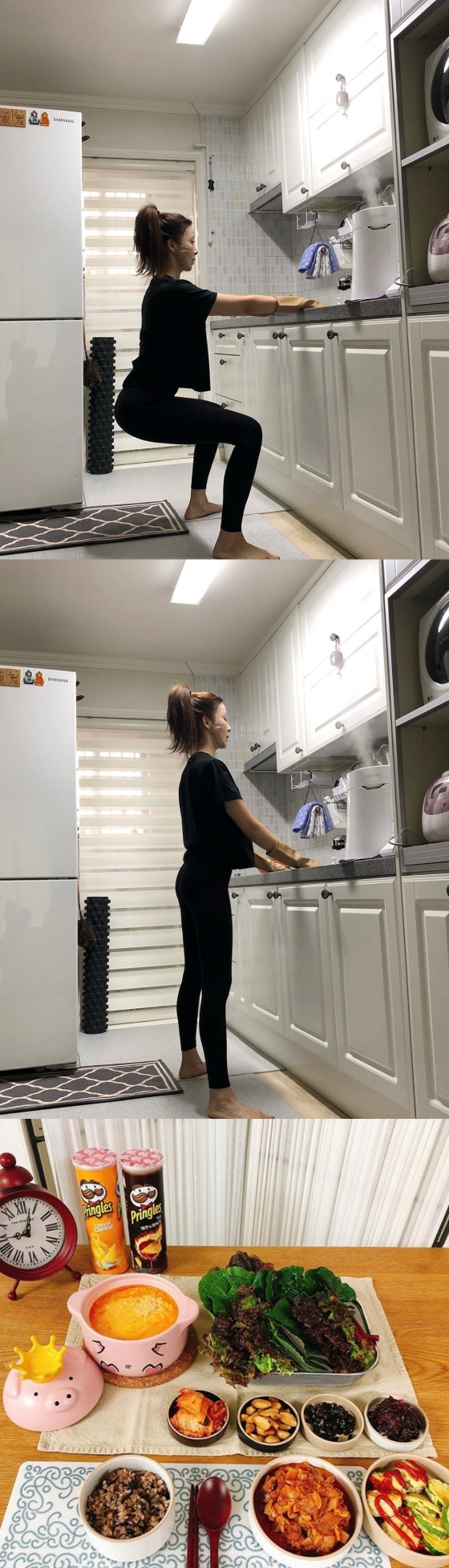 공개된 사진 속 윤세아는 여유로운 일요일을 맞아 식단을 차렸다. 음식들이 정갈하게 플레이팅 돼 있다. 이어 공개한 영상 속 윤세아는 설거지 겸 스쿼트 운동을 하고 있다.