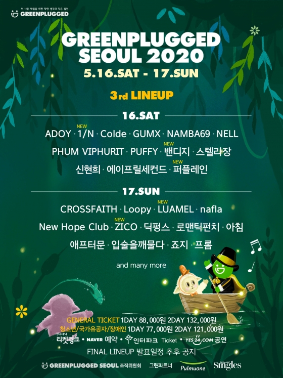 '그린플러그드 2020'은 16일 3차 라인업이 발표했다. 주최 측은 "최근 코로나19 확산으로 대부분의 공연들이 취소, 연기되거나 온라인 중계로 대체되고 있어 아쉬움을 자아내는 가운데, '그린플러그드 2020'은 공연을 예정대로 진행할 것"이라고 전했다.