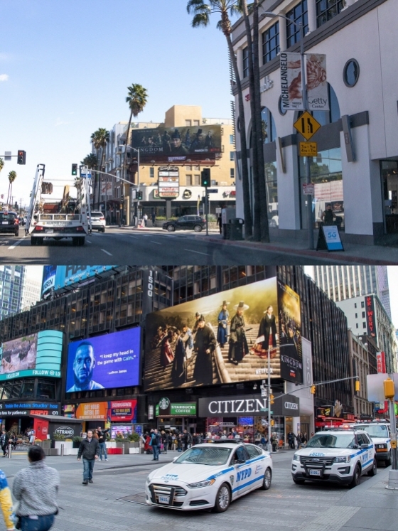미국 LA 할리우드의 선셋 블러바드,뉴욕의 타임스퀘어 등에 소개된 '킹덤2' 옥외 광고./사진제공=넷플릭스
