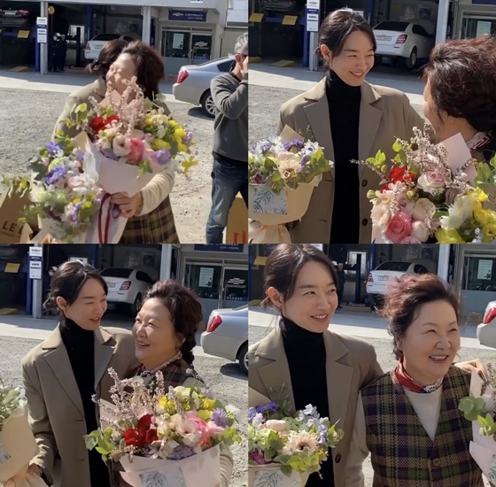 공개된 영상 속 신민아는 '휴가'에서 함께 호흡을 맞춘 김해숙과 스태프들과 함께 기념 촬영을 하고 있는 모습이다. 그는 김해숙에게 포옹하며 미소를 지었다.