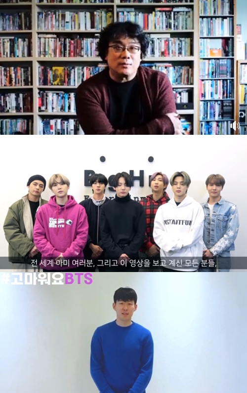 방탄소년단의 지목을 받은 손흥민 선수 역시 응원을 전했고, 봉준호 감독에게 배턴을 넘겼다. 다음 주자인 배철수가 어떤 응원을 전할지 주목 된다.