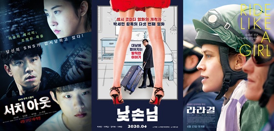 신종 코로나 바이러스 감염증(코로나19) 여파로 극장가에서는 외화의 공세가 이어졌다. 그러나 이번에는 한국 영화 두 편이 관객과 만날 준비를 마쳤다. 장르가 다른 '서치 아웃', '낮손님'이 관객의 선택을 기다리고 있다. 여기에 외화 '라라걸'도 가세했다.