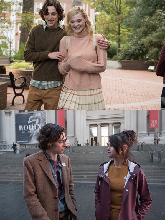 '레이니 데이 인 뉴욕'은 뉴욕의 모든 것을 사랑하는 뉴요커 개츠비(티모시 샬라메), 영화에 푹 빠진 대학생 기자 애슐리(엘르 패닝 분), 봄비와 함께 찾아온 새로운 인연 챈(셀레나 고메즈 분)의 운명같은 만남과 로맨틱한 해프닝을 그렸다.