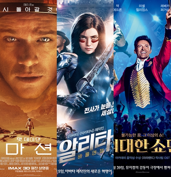 27일 영화계에 따르면 '마션' '알리타: 배틀엔젤' '위대한 쇼맨' 등 과거 이십세기폭스 영화들이 5월 차례로 재개봉한다. 4월 극장가에 '어벤져스' 등 마블 영화들을 차례로 재개봉했던 디즈니는 5월에는 인수한 이십세기폭스(현 이십세기스튜디오) 영화들을 차례로 재개봉시킨다.