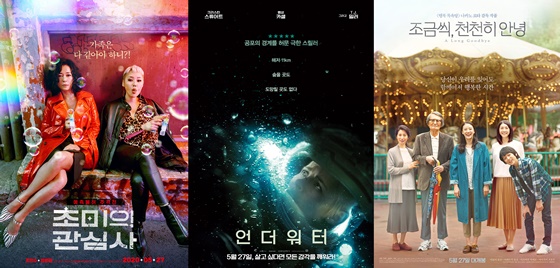 이태원 클럽발 신종 코로나 바이러스 감염증(코로나19)으로 인해 주춤했던 영화계가 다시 한 번 기지개 펼 준비를 마쳤다. 좀처럼 박스오피스에서 개봉한 신작 영화들을 볼 수 없었던 상황에서 영화 '초미의 관심사'를 시작으로 다양한 영화들이 관객과 만난다. 이번주 개봉하는 영화 중 '초미의 관심사', 외화 '언더워터', '조금씩, 천천히 안녕'에 대해 알아보자.