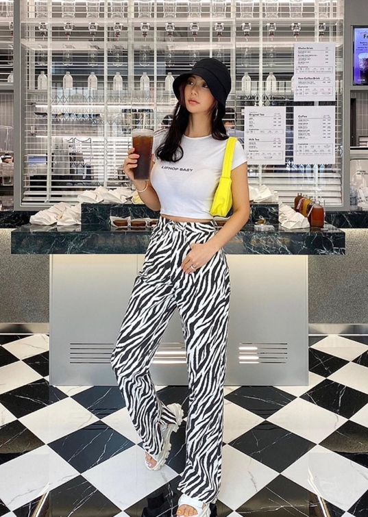 공개 된 사진 속 클라라는 배꼽티에 얼룩말 무늬 팬츠를 매치, 패셔니스타다운 모습을 보여주고 있다. 여기에 한손에 텀블러에 담은 아이스 아메리카노를 들고 여유를 만끽하고 있다.