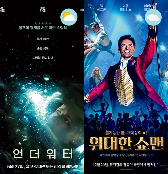 '언더워터'와 '위대한 쇼맨'이 5월 마지막 주말 박스오피스 1,2위를 이끌 전망이다.