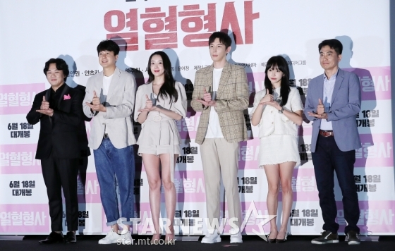 연예영화[★포토]'열혈형사' 덕분에 챌린지 동참!발행 : 2020.06.11 ・ 16:46김창현 기자배우 김인권, 김승현, 하주희, 서도현, 천이슬, 윤여창 감독이 11일 오후 서울 용산구 아이파크몰 CGV에서 열린 영화 '열혈형사' 언론시사회에 참석해 포즈를 취하고 있다.'열혈형사'는 꼼수로 출세를 꿈꾸다 강제 유턴 당한 날라리 형사 '동민'(김인권 분)과 FM 형사 '몽허'(얀츠카 분)가 실종 사건으로 만나 벌어지는 공조 액션이다. 오는 18일 개봉.<저작권자 © 스타뉴스, 무단전재 및 재배포 금지>열혈형사추천 기사김창현 기자기자홈좋아요 연예-영화의 인기 급상승 뉴스연예-영화의 최신 뉴스
