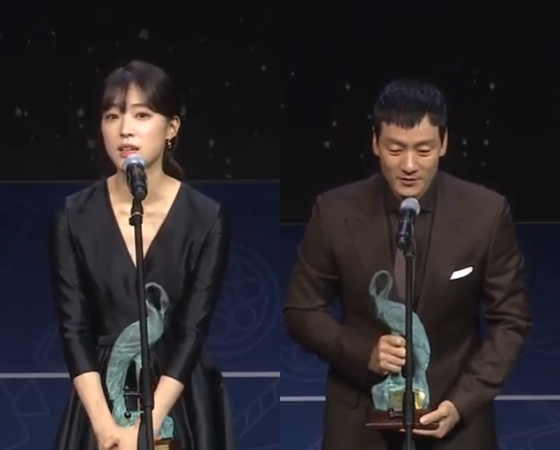 '82년생 김지영' 김미경과 '남산의 부장들' 이성민은 남녀조연상을 받았다.