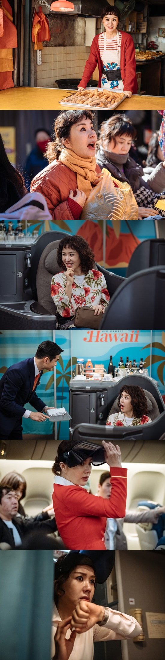 마지막 미영의 부캐는 바로 비행기가 납치되자, 승객들을 구하기 위해 숨겨진 내공(?)을 발휘하는 히어로 캐릭터. 하와이행 비행기의 유일한 해결사가 된 미영은 위협적인 테러리스트들을 모두 상대하는 시원시원한 액션 실력뿐만 아니라 리더십까지 보여주며 놀라움을 전한다. 평범한 꽈배기 맛집 사장이었던 미영의 숨겨두었던 액션 실력은 올여름 관객에게 유쾌하고 통쾌한 카타르시스를 선사한다.